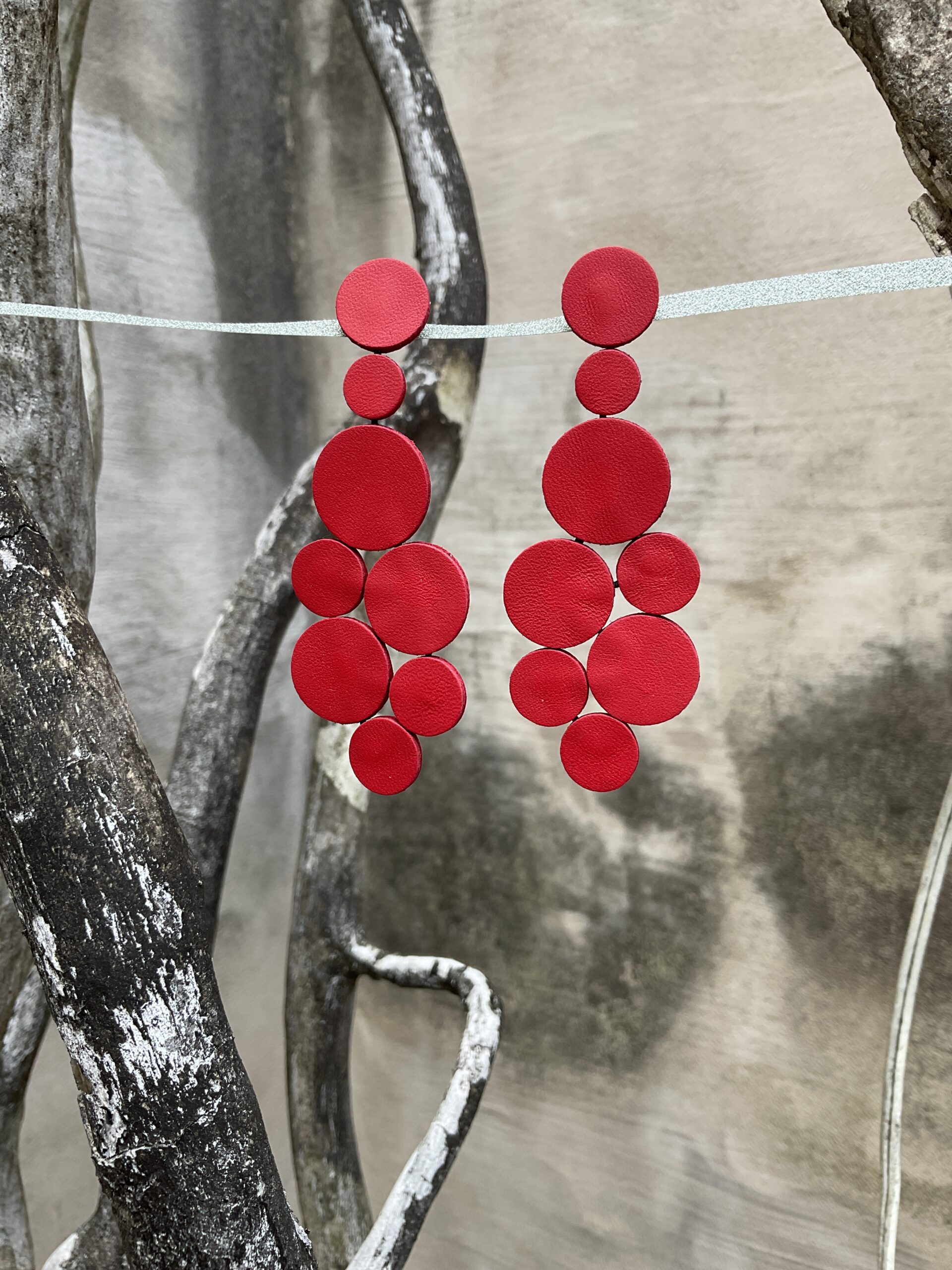 Oorbellen in mat rood leder.